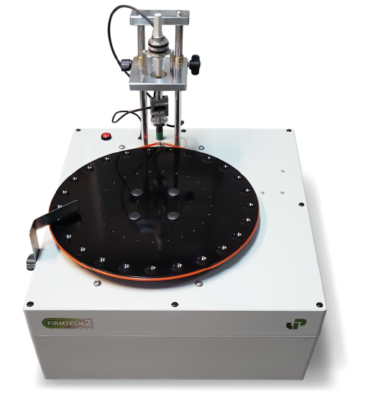 El instrumento FT7, Firmtech 7, para medir la firmeza de pequeños “frutos rojos” (o frutos blandos), de UP Umweltanalytische Produkte GmbH, es un hardware (con mesa giratoria para cereza) que mide la firmeza y el tamaño de los frutos blandos. Cerezas, frutillas, arándanos, ciruelas, tomate, uva, etc.